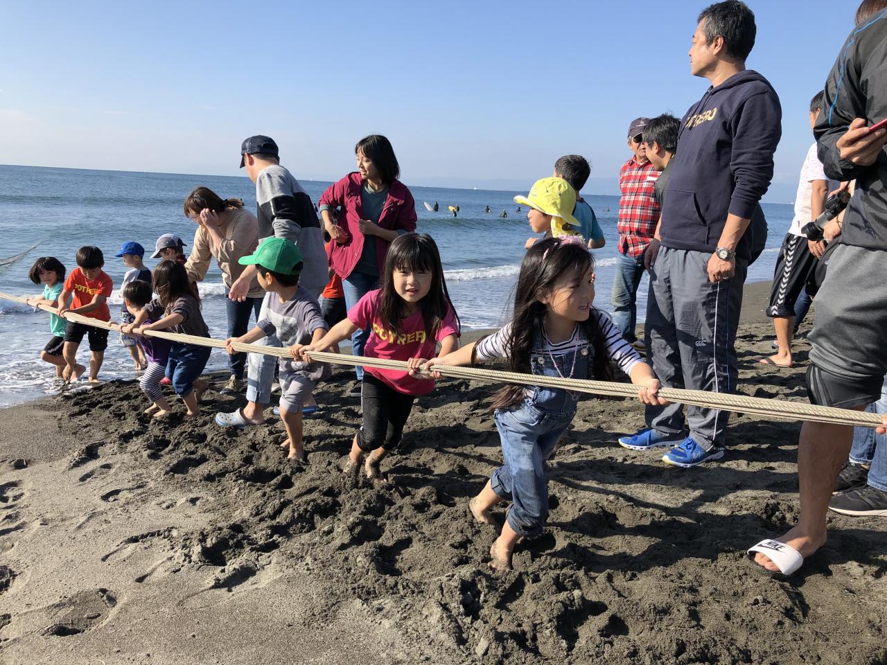 4度目の正直で地引網を開催しました! 宝探し、煎餅食い競走、ビーチフラッグ、等々沢山のゲームをしました! サッカーも、頑張ろう^_^