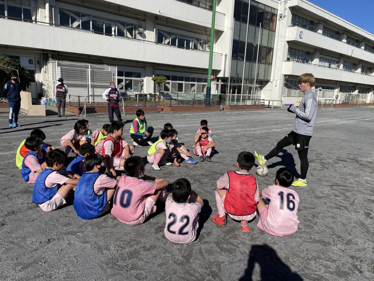 横浜FC所属の古宿理久選手がポットレーロFCの練習場に遊びに来てくれました。